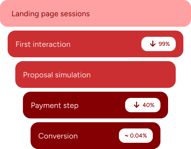 The experience lacked clarity, required too much effort upfront, and wasn’t optimized for mobile usage. Near the end of the journey, an additional 40% drop-off occurred at the payment stage.