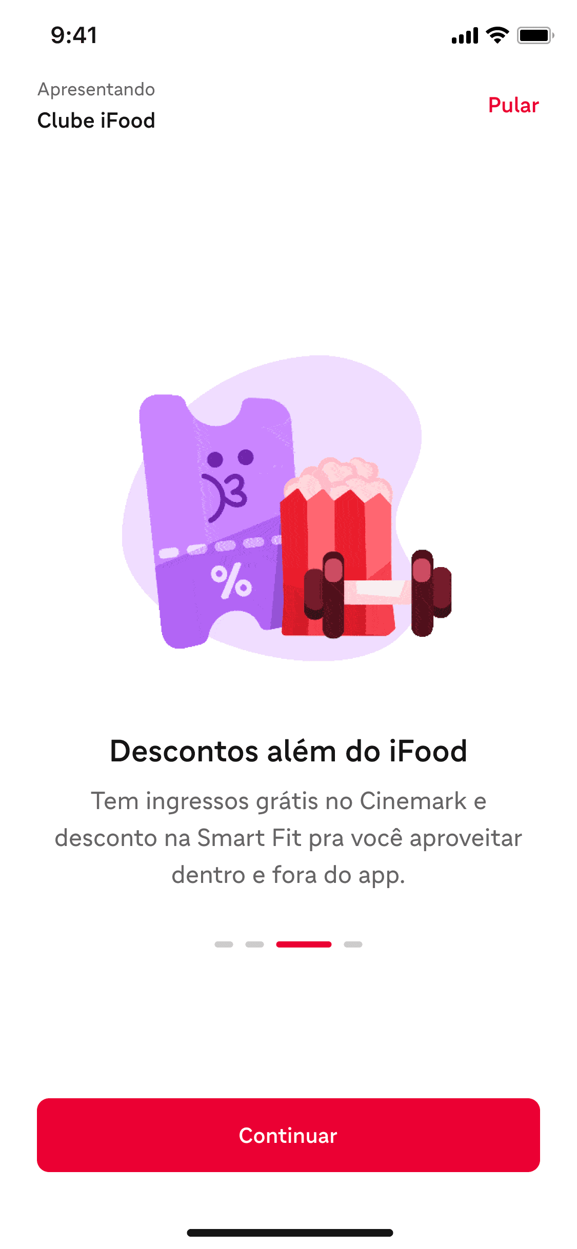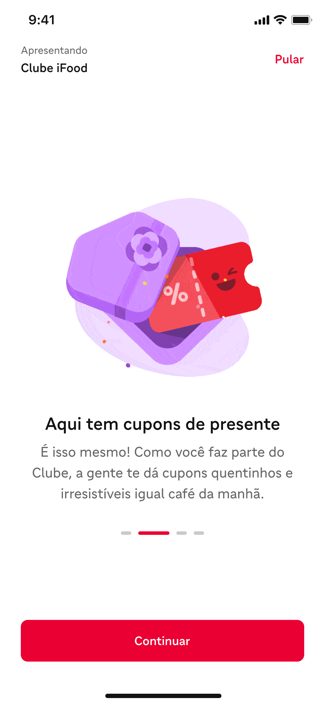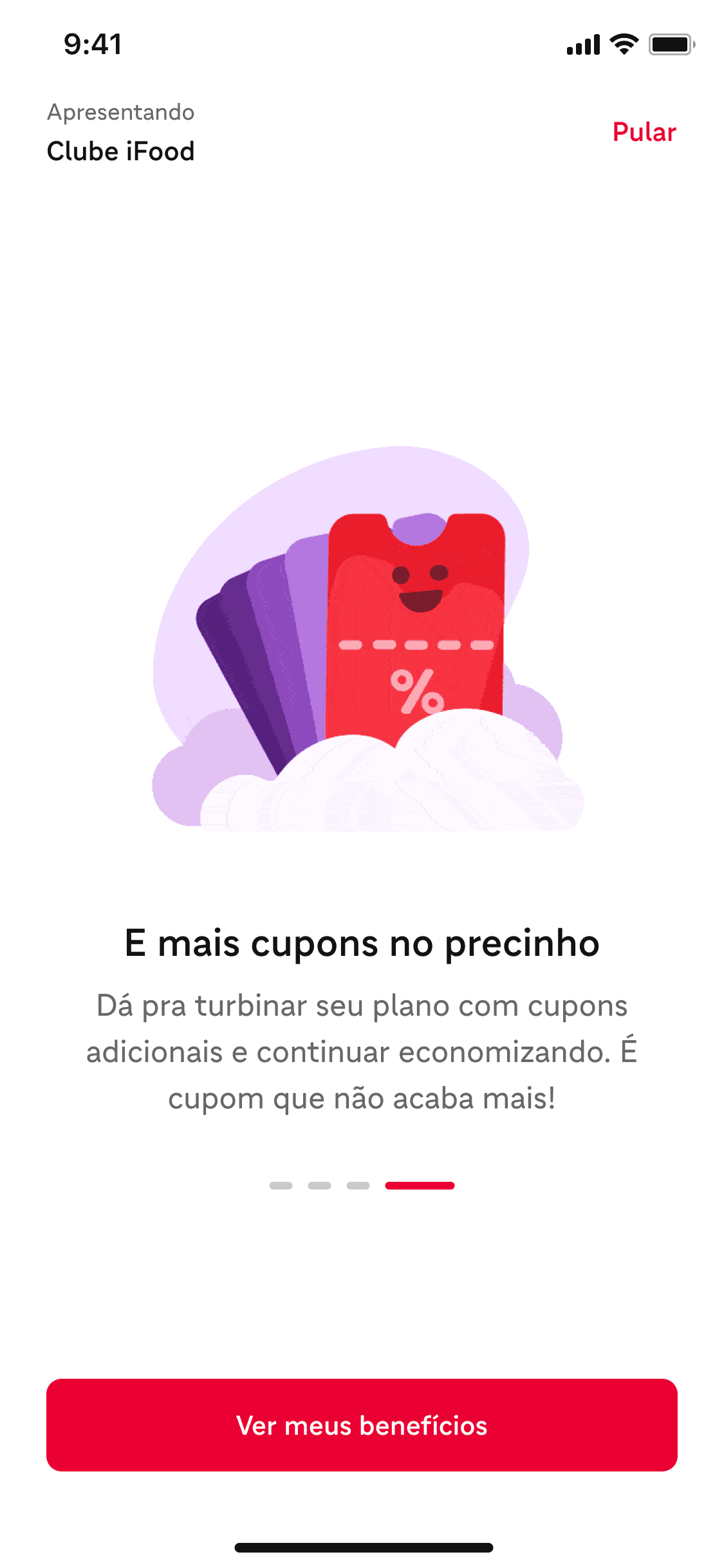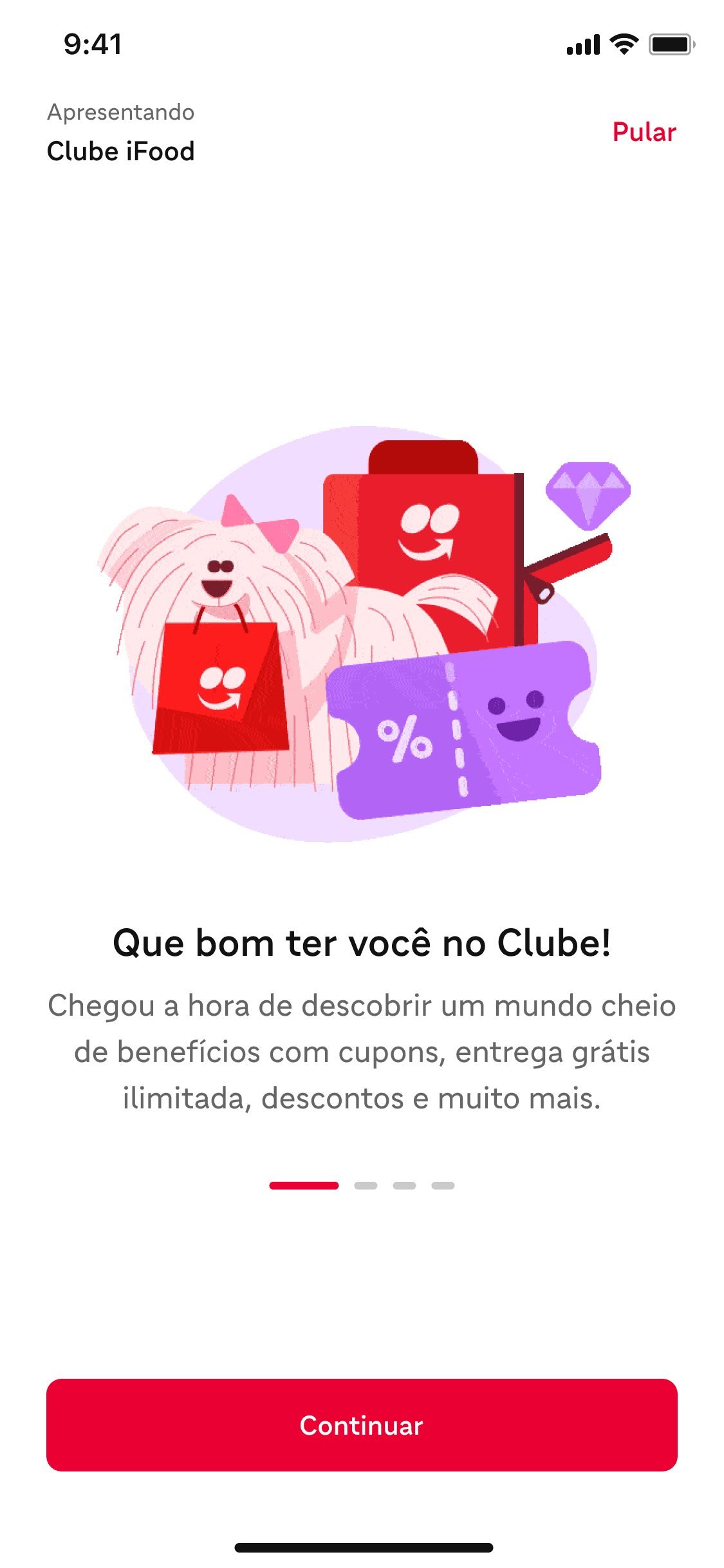 A dedicated onboarding flow for new iFood Club subscribers, designed to reinforce value and centralize benefit information immediately after subscription.